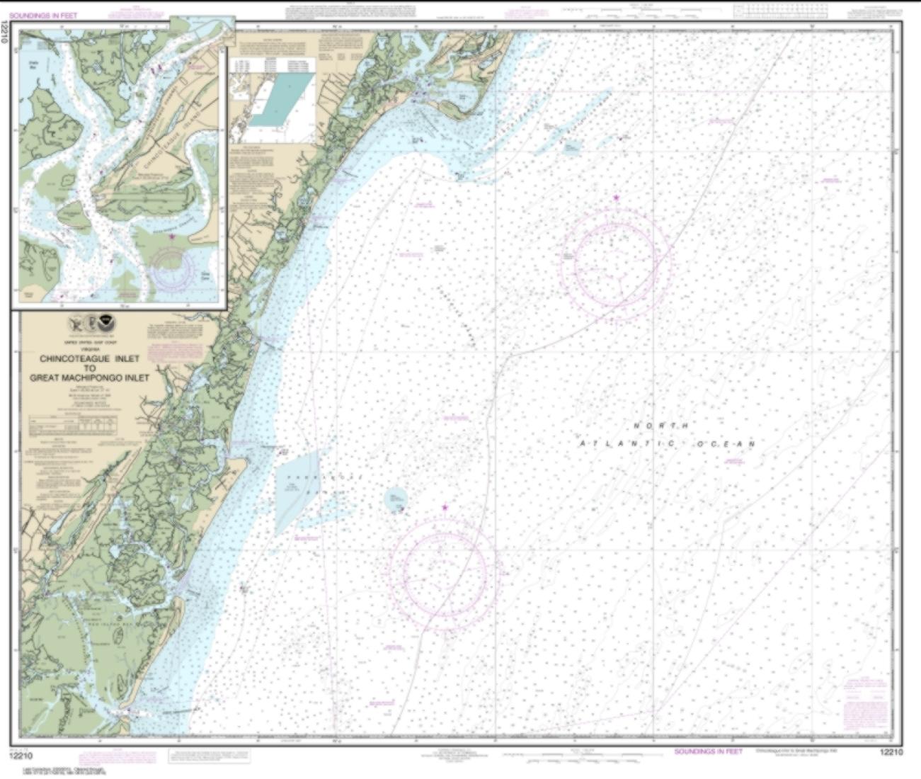 East View Map Link (EVML), a certified NOAA and NGA print on demand printer; provides mariners with up-to-date National Oceanic and Atmospheric Administration (NOAA) approved nautical charts. Our Chincoteague Inlet to Great Machipongo Inlet; Chincoteague Inlet nautical chart (Map Index 12210) is printed using high resolution, heavy weight and acid free paper. All charts are printed with the latest Notice to Mariners (NTMs), and meet United States Coast Guard and international carriage requirements for commercial and recreational vessels. Waterproof options are also available. All NOAA nautical charts ship rolled, and are printed by East View Map Link, LLC.