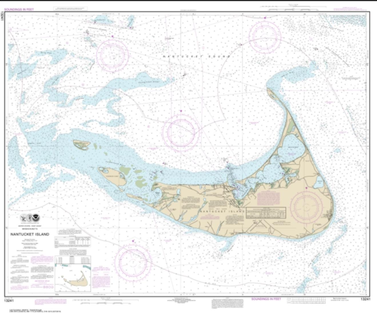East View Map Link (EVML), a certified NOAA and NGA print on demand printer; provides mariners with up-to-date National Oceanic and Atmospheric Administration (NOAA) approved nautical charts. Our Nantucket Island nautical chart (Map Index 13241) is printed using high resolution, heavy weight and acid free paper. All charts are printed with the latest Notice to Mariners (NTMs), and meet United States Coast Guard and international carriage requirements for commercial and recreational vessels. Waterproof options are also available. All NOAA nautical charts ship rolled, and are printed by East View Map Link, LLC.